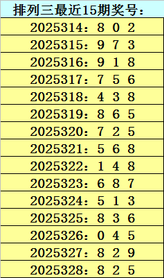 一、体彩陈设三第2025328期奖号为825,该号码历史上直选出现了3次,组选出现了32次。